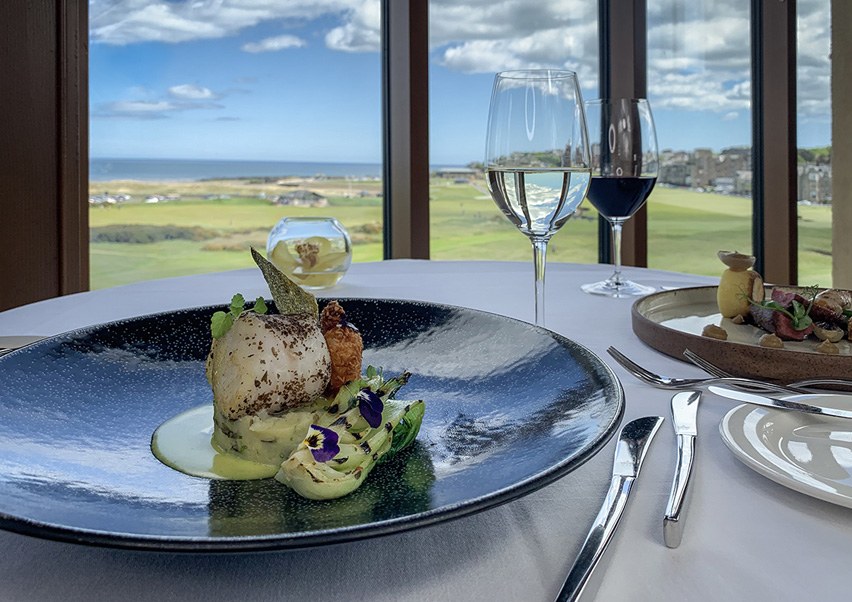 Discover the taste of St Andrews at the Road Hole Restaurant. The 3 AA awarded restaurant offers sprawling views of the Old Course and the North Sea whilst you dine. Whether you’re ordering from the grill or sampling the seafood selection, our Scottish food is locally sourced, with our chefs picking up fresh seafood regularly.